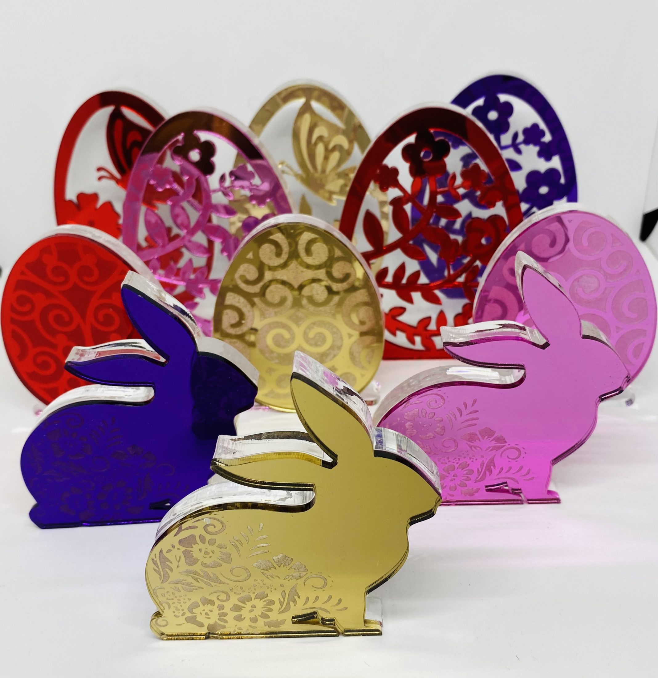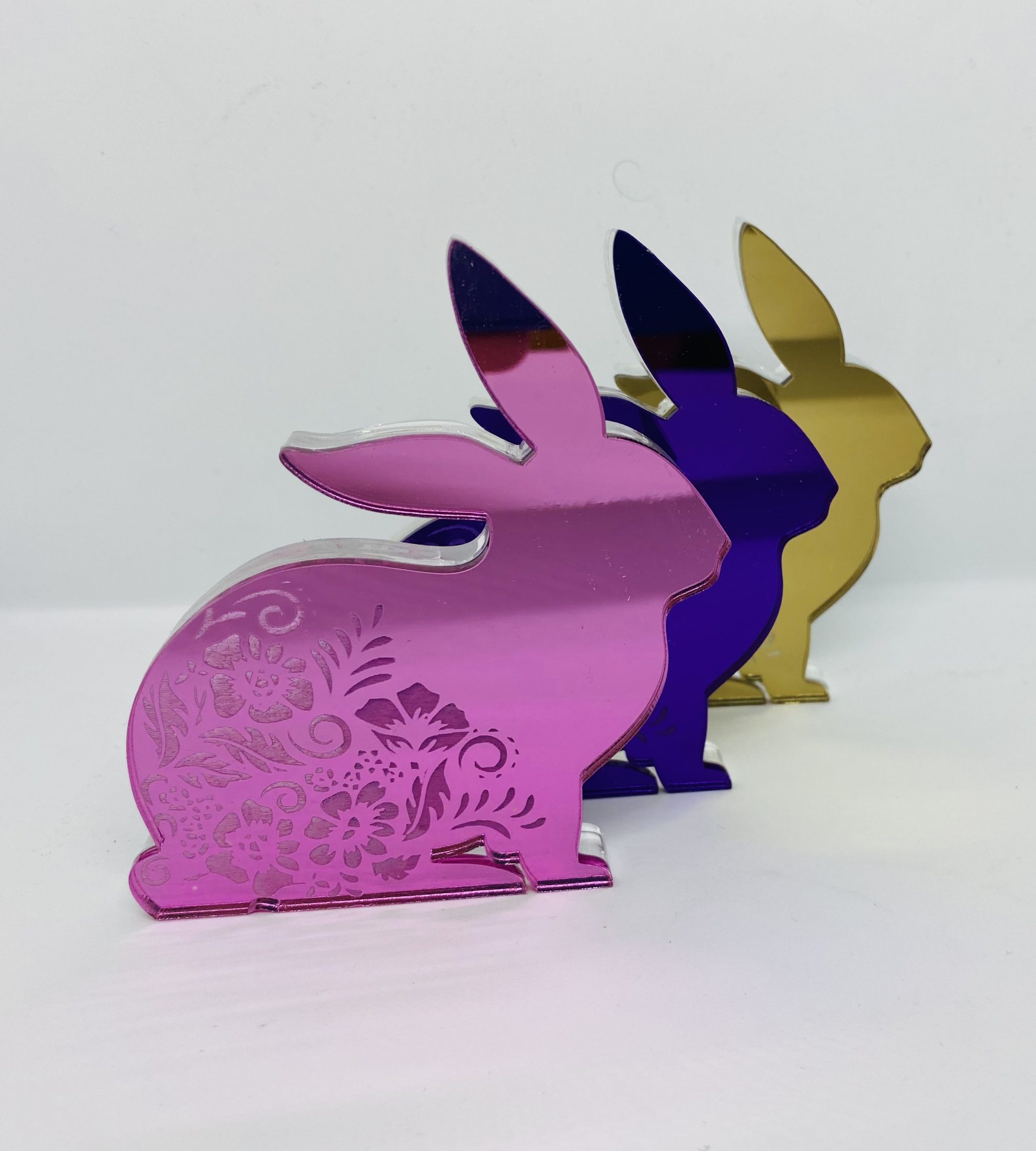 Acrylic Rabbit pink violet and gold